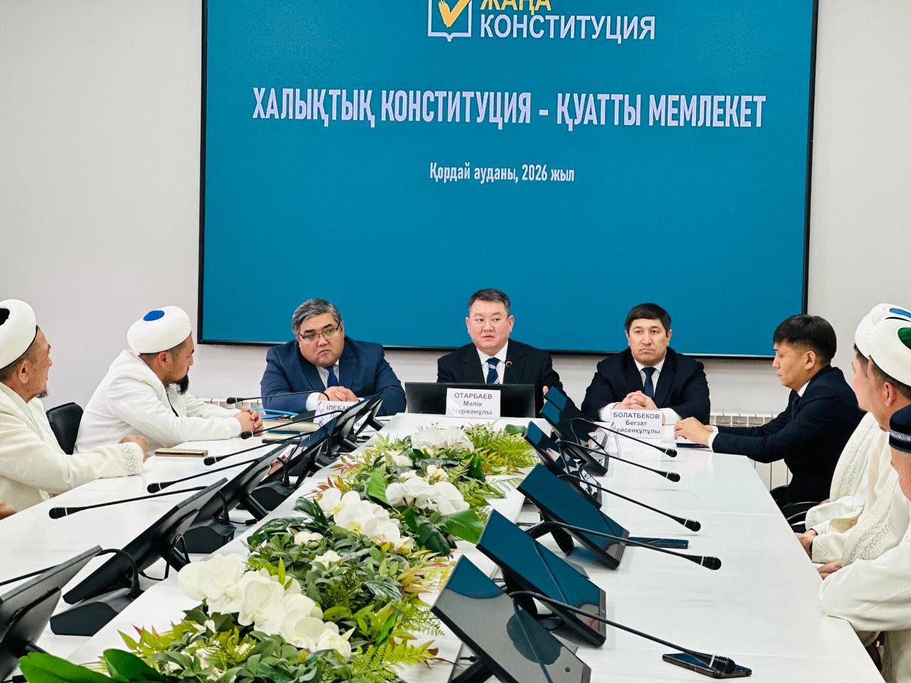 Алғашқы сөз кезегі Қордай аудандық Қоғамдық кеңес төрағасы Нұржан Молдабековке берілді. Ол жаңа Конституция жобасының мемлекеттік басқаруды жетілдіруге, азаматтардың құқықтары мен мүдделерін қорғауды күшейтуге және қоғам мен мемлекет арасындағы жауапкершілікті арттыруға бағытталғанын жеткізді. Сонымен қатар, референдум азаматтарға мемлекет басқару ісіне тікелей қатысуға мүмкіндік беретінін, халық пікірінің ел болашағын айқындауда маңызын ерекше атап өтті.